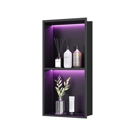 2024 नया आधुनिक डिजाइन काले 304 स्टेनलेस स्टील की दीवार आला के साथ आधुनिक बाथरूम और होटल के लिए लाइट शॉवर आला