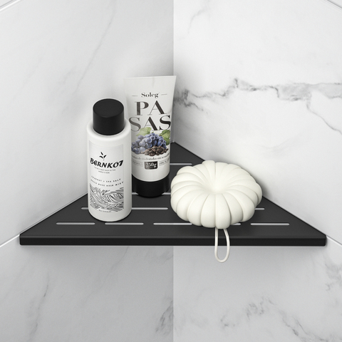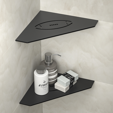 Free US Shipping 10" Black Bathroom Corner Storage Shower Shelf Oval Pattern Tool-Free Installation
