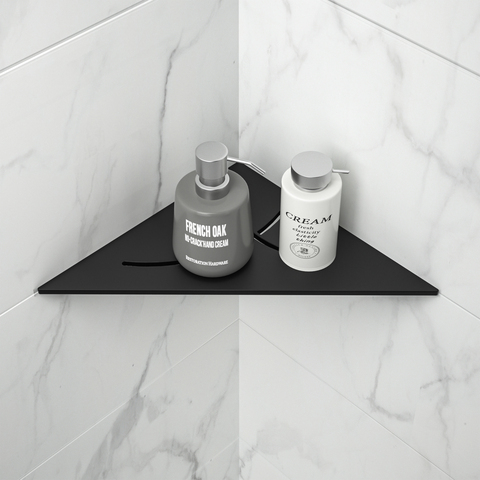 Free Shipping USA 10 Inch Matte Black Corner Shower Shelf No Drilling Required Stainless Steel Cutouts Bathroom Application